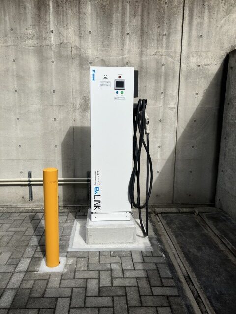 2024年10月には、急速充電器を1台設置しました。急速充電器は普通充電器に比べて充電スピードが圧倒的に早く、また1台で同時に車2台の充電ができ、普通充電器と合わせて4台の充電を賄うことができるようになりました。